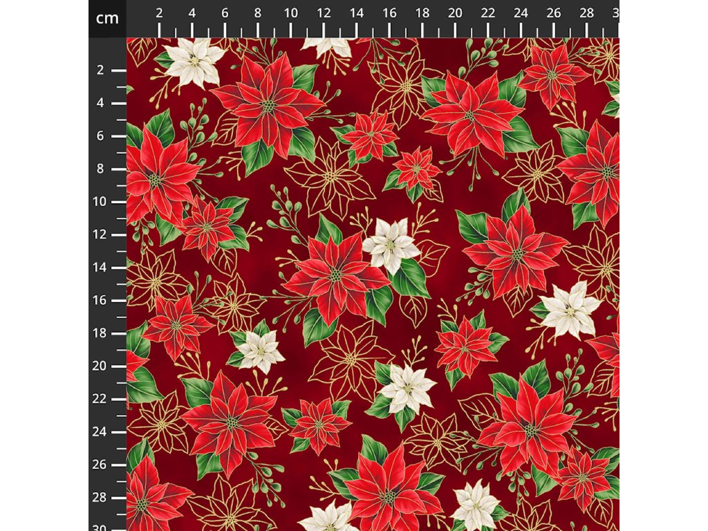 Hoffman 3298-400 Blooming Holidays vícebarevná vánoční zlatotisk bavlněná látka