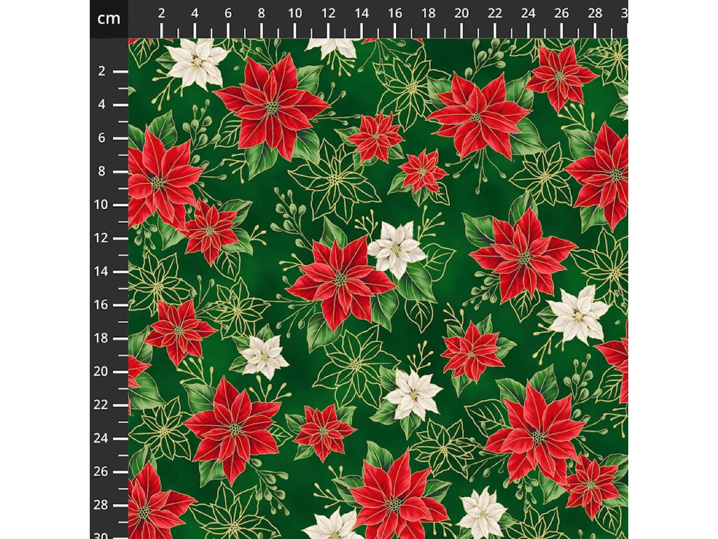 Hoffman 3298-800 Blooming Holidays vícebarevná vánoční zlatotisk bavlněná látka