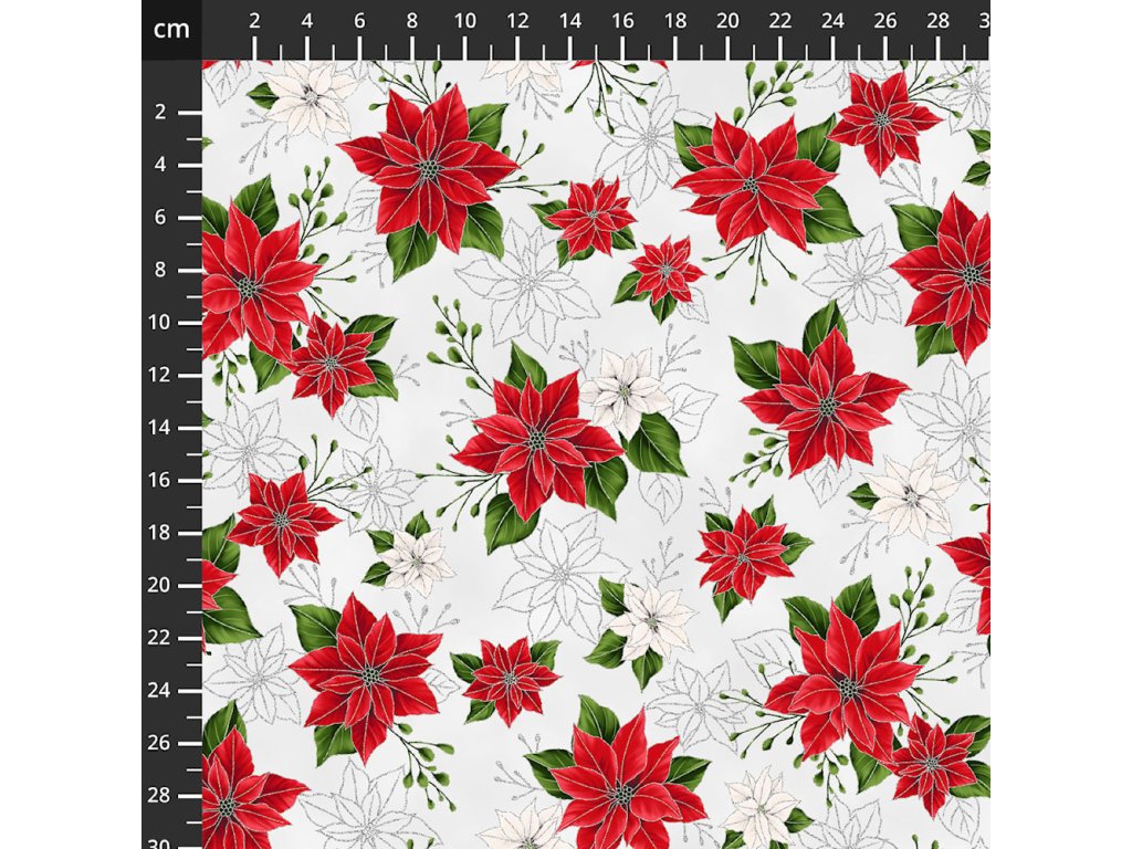 Hoffman 3298-901 Blooming Holidays vícebarevná vánoční stříbrotisk bavlněná látka