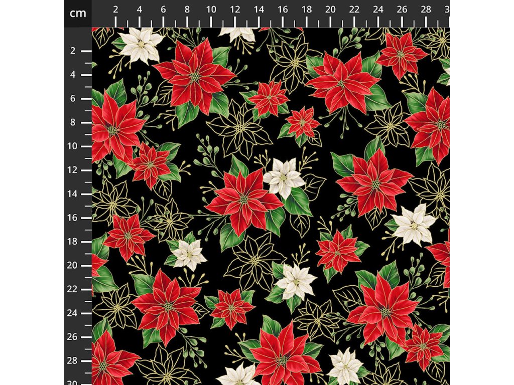 Hoffman 3298-908 Blooming Holidays vícebarevná vánoční zlatotisk bavlněná látka