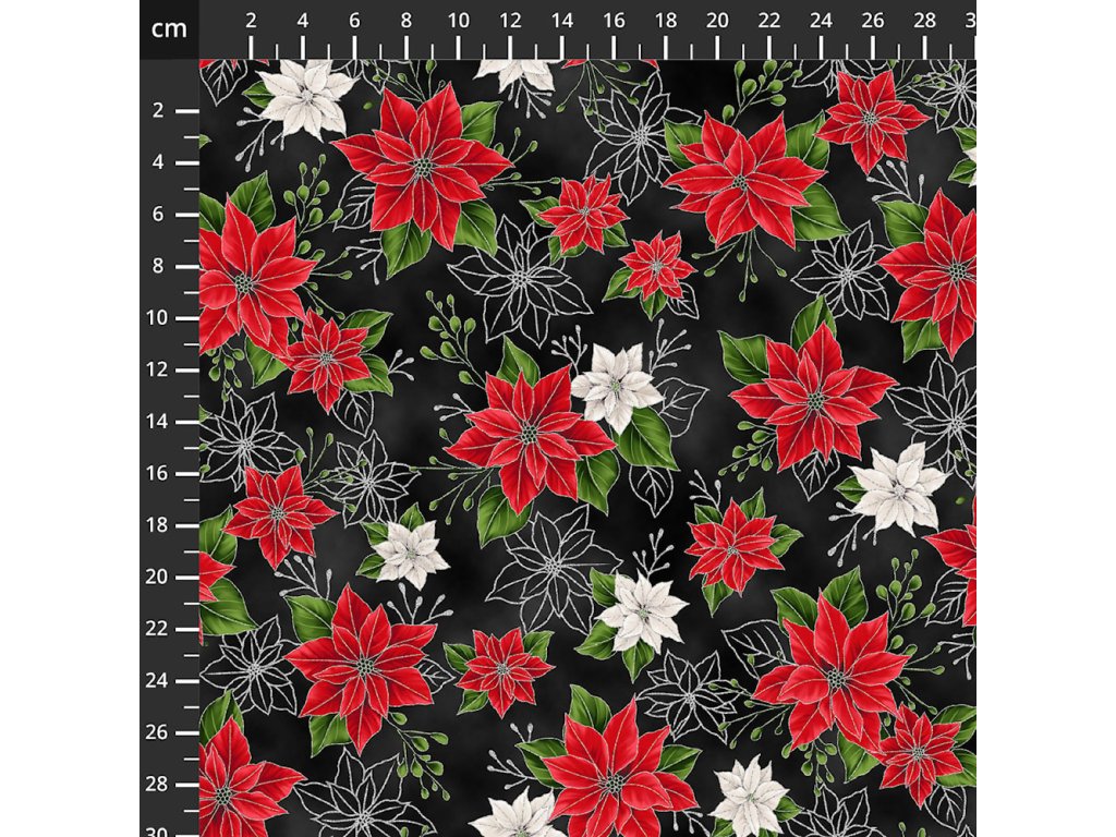 Hoffman 3298-915 Blooming Holidays vícebarevná vánoční stříbrotisk bavlněná látka