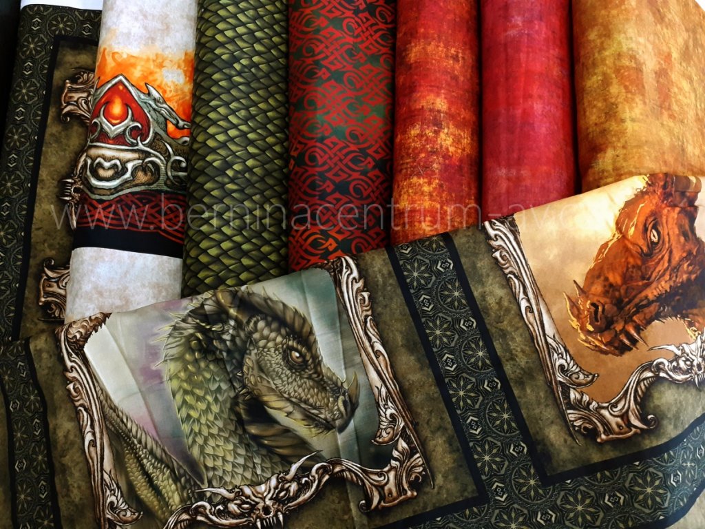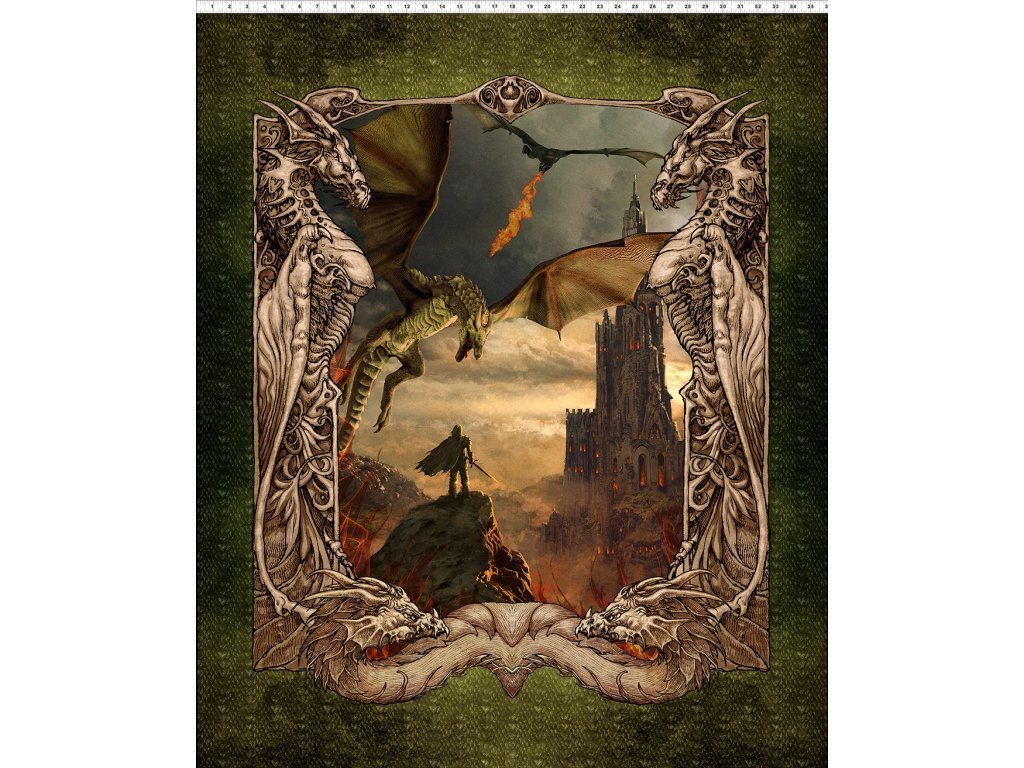 In The Beginning 999-696 Dragons panel velký vícebarevná bavlněná látka patchwork