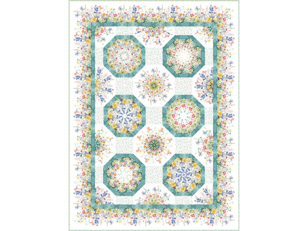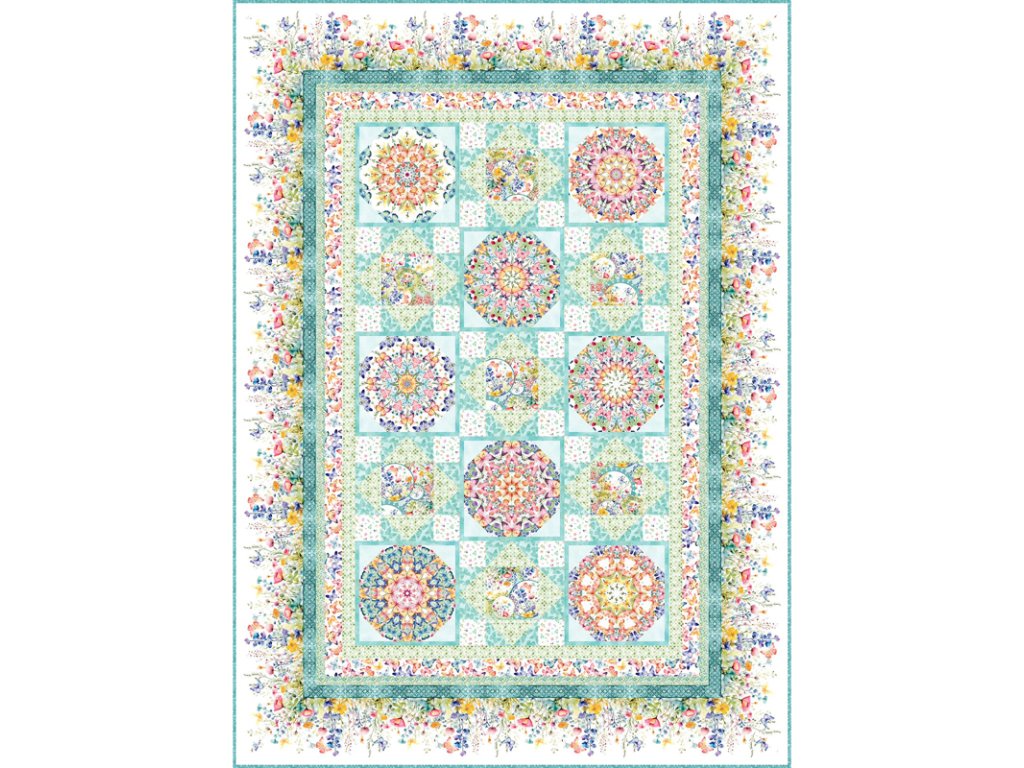 Panel Mandaly, který k ní patří, je kaleidoskop již hotový :) Pokud nemáte rády vodní tyrkysový ton, který je na borduře, můžete oříznout a doplnit vlastní odstín...