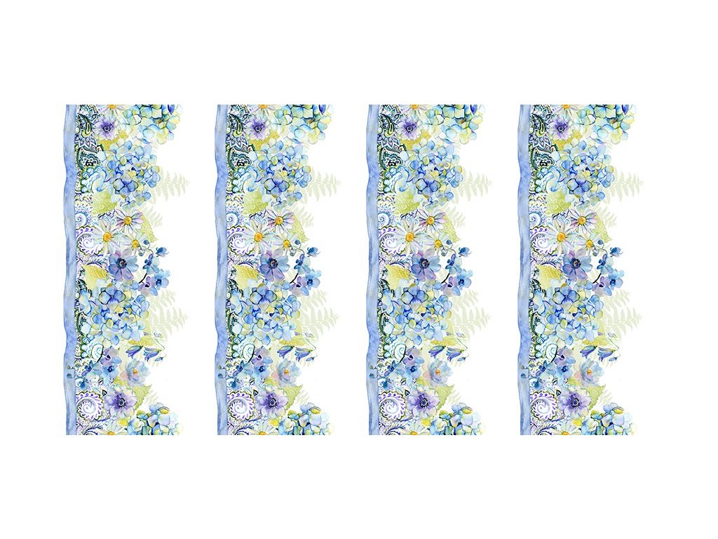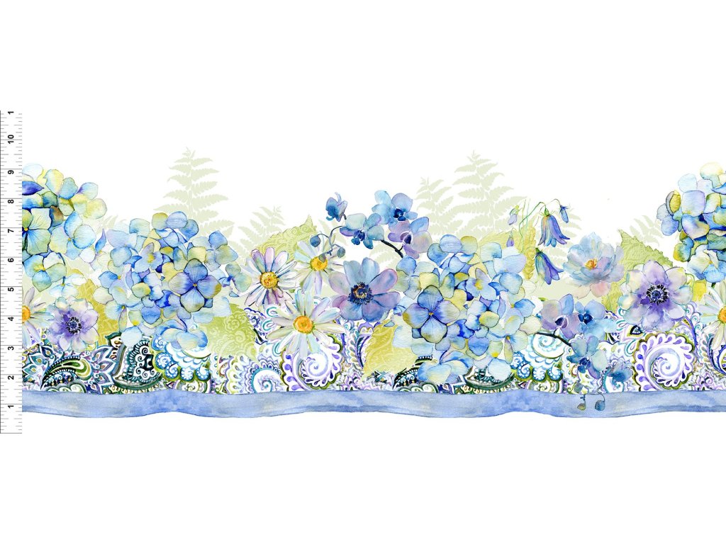 Krásná kolekce, lehce venkovský styl v tisku akvarelových maleb. Měřítko na obrázku v palcích. Čtyři opakování v šíři 112 cm nad sebou. Koupíte délku deky a máte na všechny čtyři strany nádhernou borduru. Výborné také pro kaleidoskopy...100% bavlněná látka jemného krásného digitálního tisku. Gramáž 139g na m2.