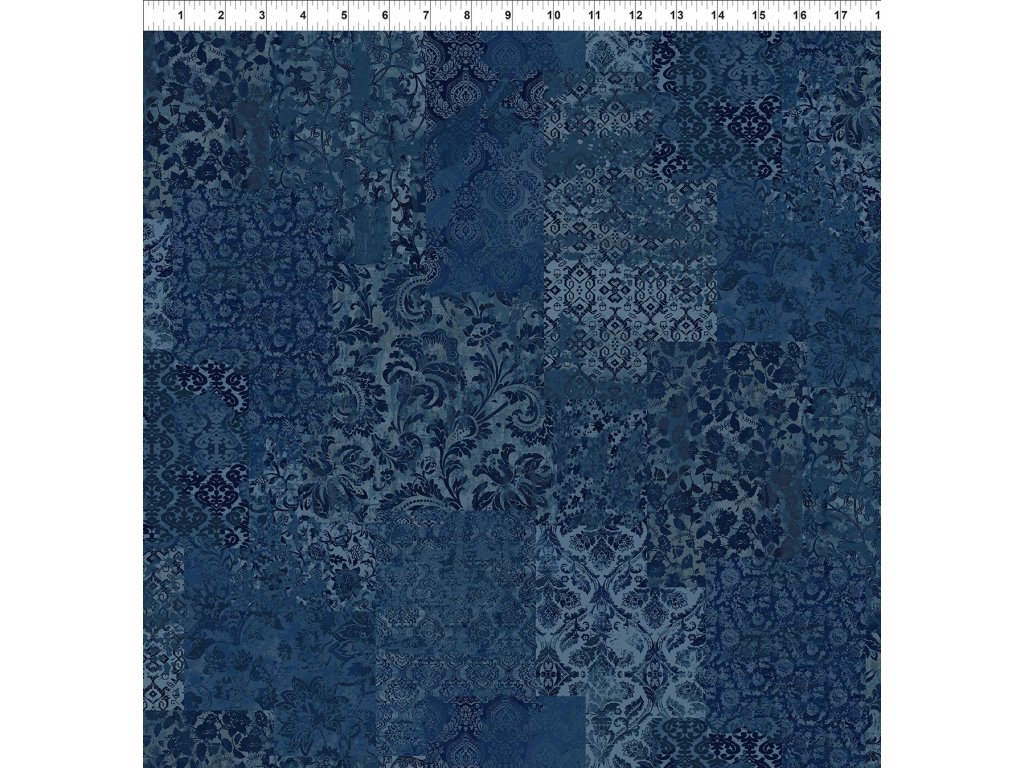In The Beginning 999-962 Carpet Bag Romance modrá bavlněná látka