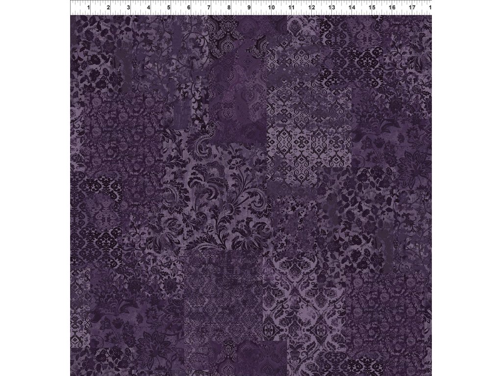 In The Beginning 999-962 Carpet Bag Romance fialová bavlněná látka