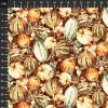 Krásný podzimní tisk- jako malování aquarelem. Dýně na hnědém pozadí. Látky ze stejné kolekce připojeny níže na stránce.