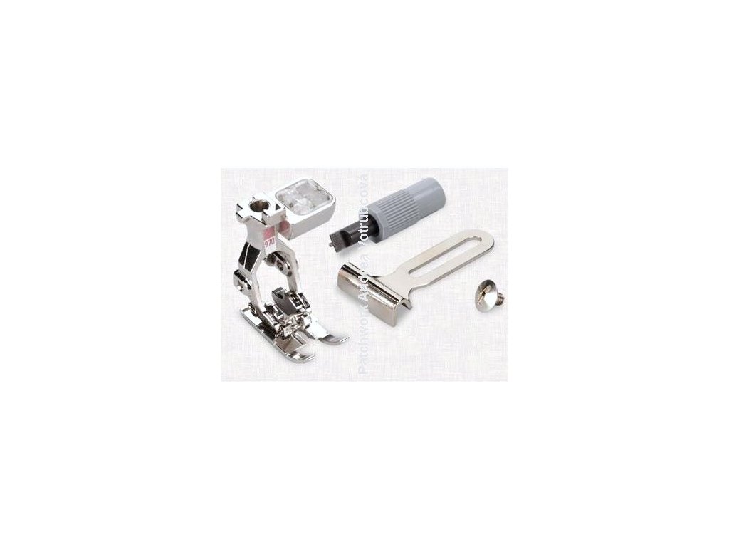 Použití: Nové příslušenství Bernina pro Vaše celokovové stroje. Speciálně připravená patka a k ní ,,průvodce" látky s nastavitelnou vzdáleností od ní umožní perfektní šití se stále stejně širokým švovým přídavkem. Výška průvodce hezky vede i vyšší látky či patchworkové sendviče.