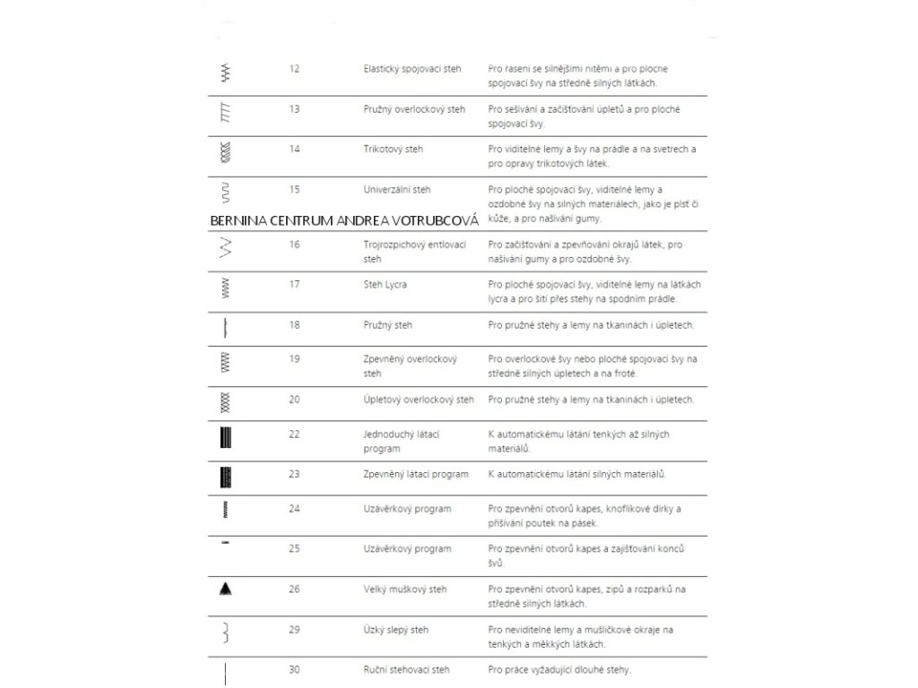 Se strojem je dodáván přehledný stručný návod, plnohodnotný aktuální návod lze stáhnout v elektronické podobě ze stránek Berniny zde.
